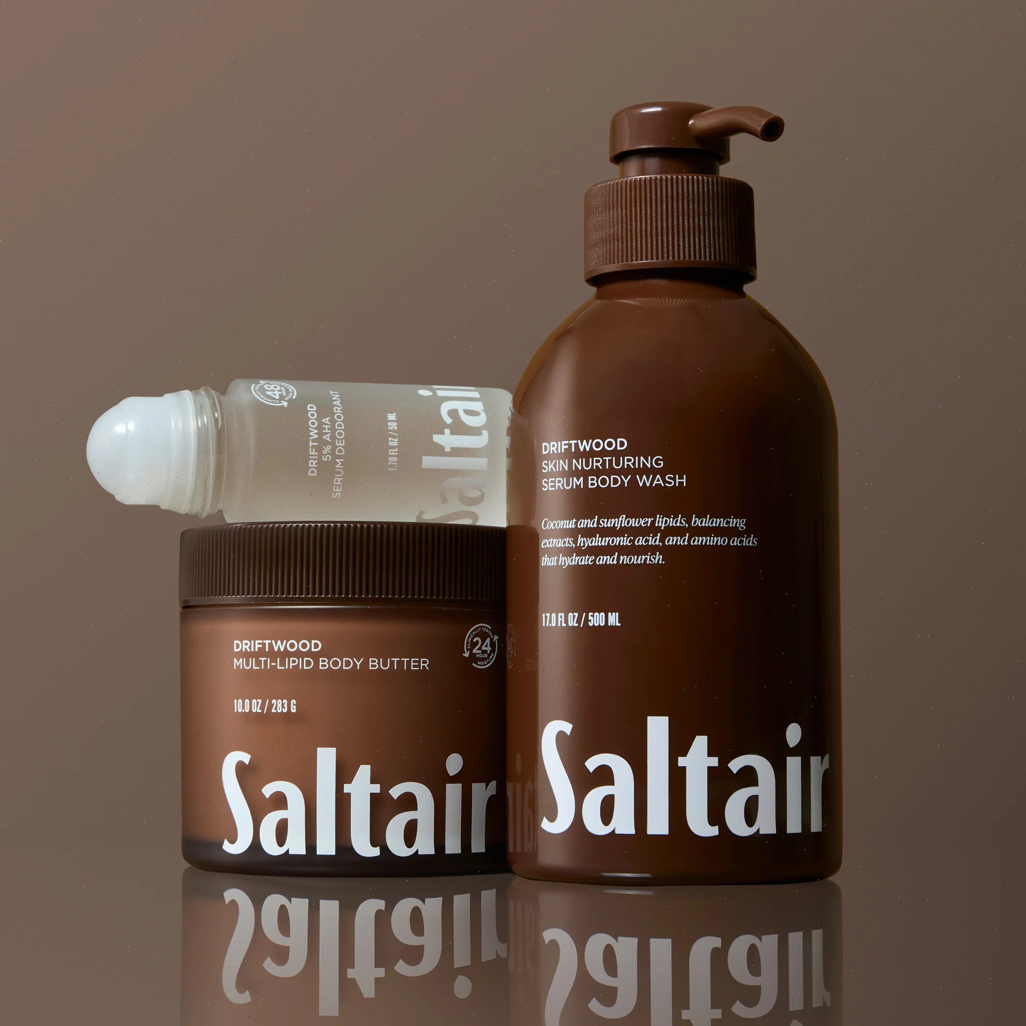 Experience our three full-size Driftwood fan-favorites. Warm and grounding, where crisp air meets woody serenity, Driftwood brings you to the water’s edge. With notes of bergamot, sage and driftwood.