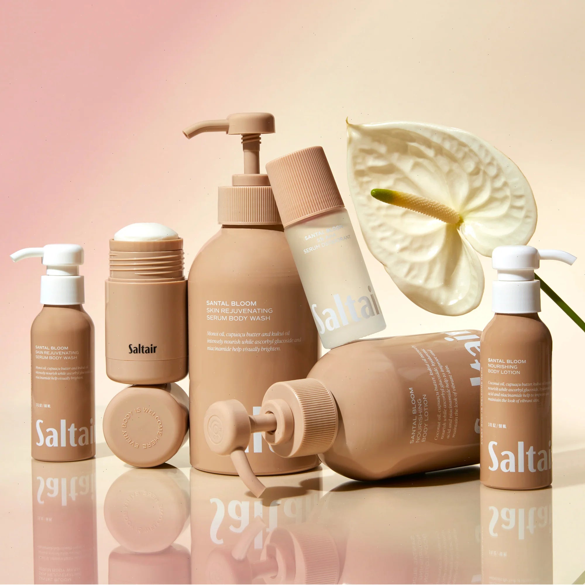 Our restorative santal bloom travel size body wash refreshes skin with a burst of hydration. Formulated with biodegradable cleansing agents, this body wash is made with monoi oil, cupuaçu butter and kukui oil that intensely nourish the skin while ascorbyl glucoside and niacinamide help fade the look of dark spots. Skin is left soft, smooth, deeply nourished and lightly fragranced. Developed for all skin types and suitable for daily use.